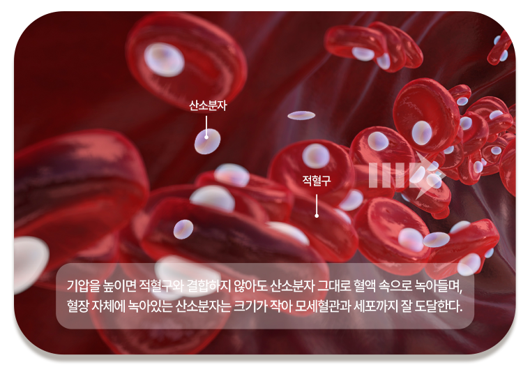 이렇게 혈장에 녹아든 산소는 평소 혈액공급이 원활하지 못했던 손상 조직이나