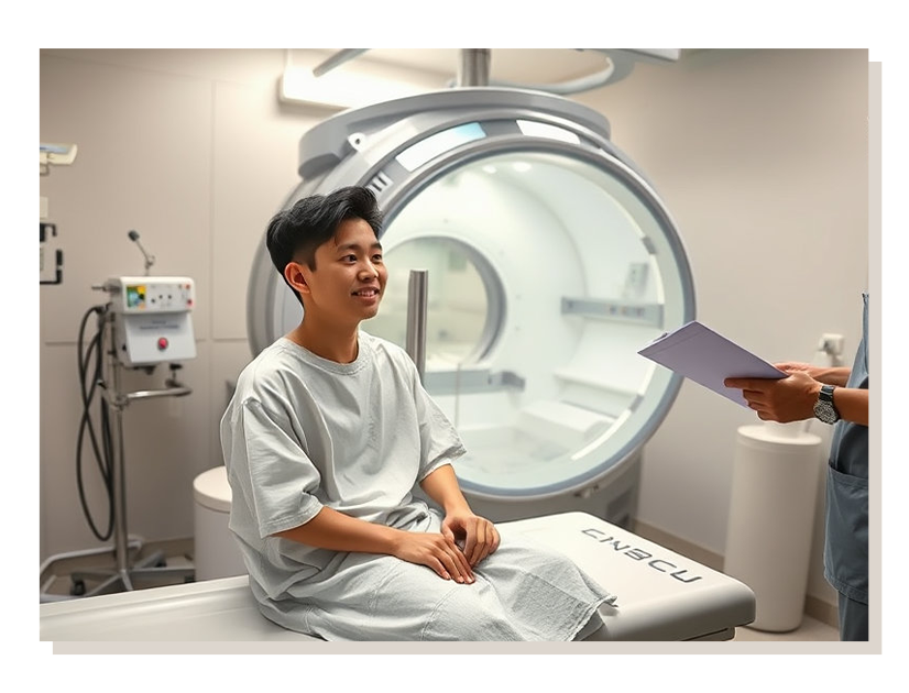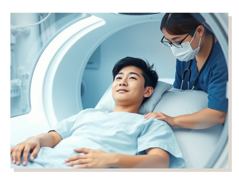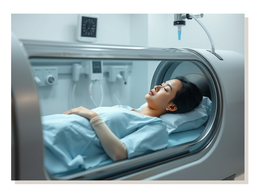 챔버 안에서 환자가 100% 순도의 산소를 마시는 치료 방법입니다.