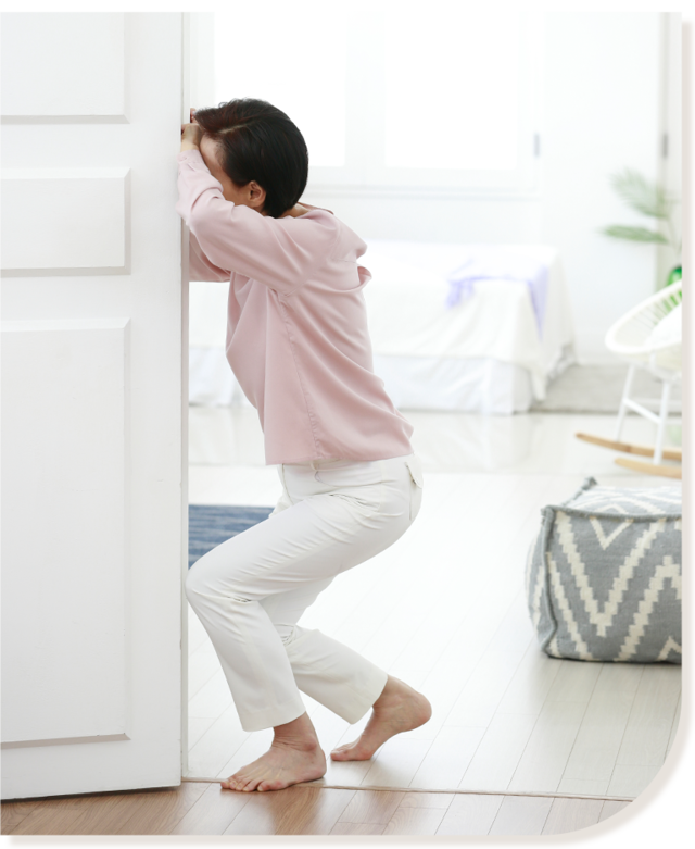 '쓰러질 것 같다', '균형을 잡기 어렵다', '발이 땅에 닿지