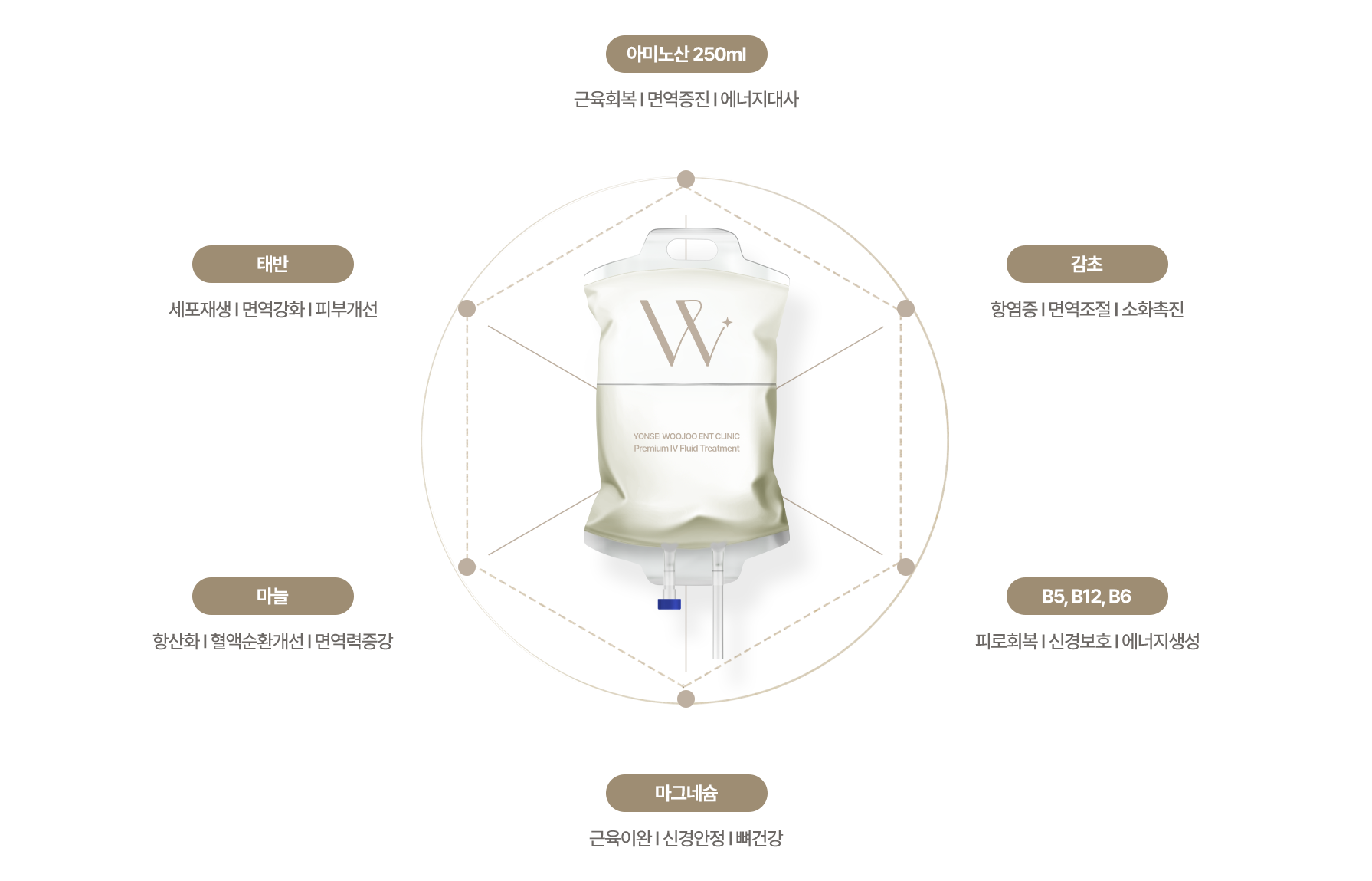몸에 좋은 성분만을 엄선해 조합한 연세우주만의 프리미엄 커스텀 수액입니다.